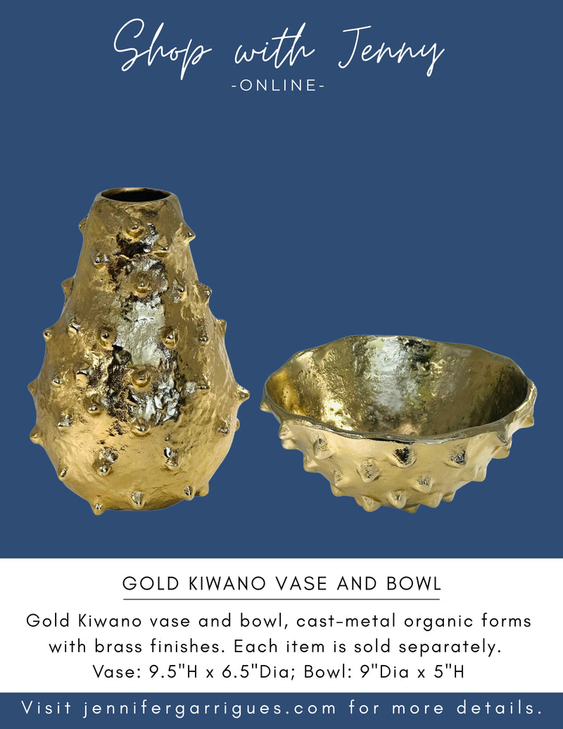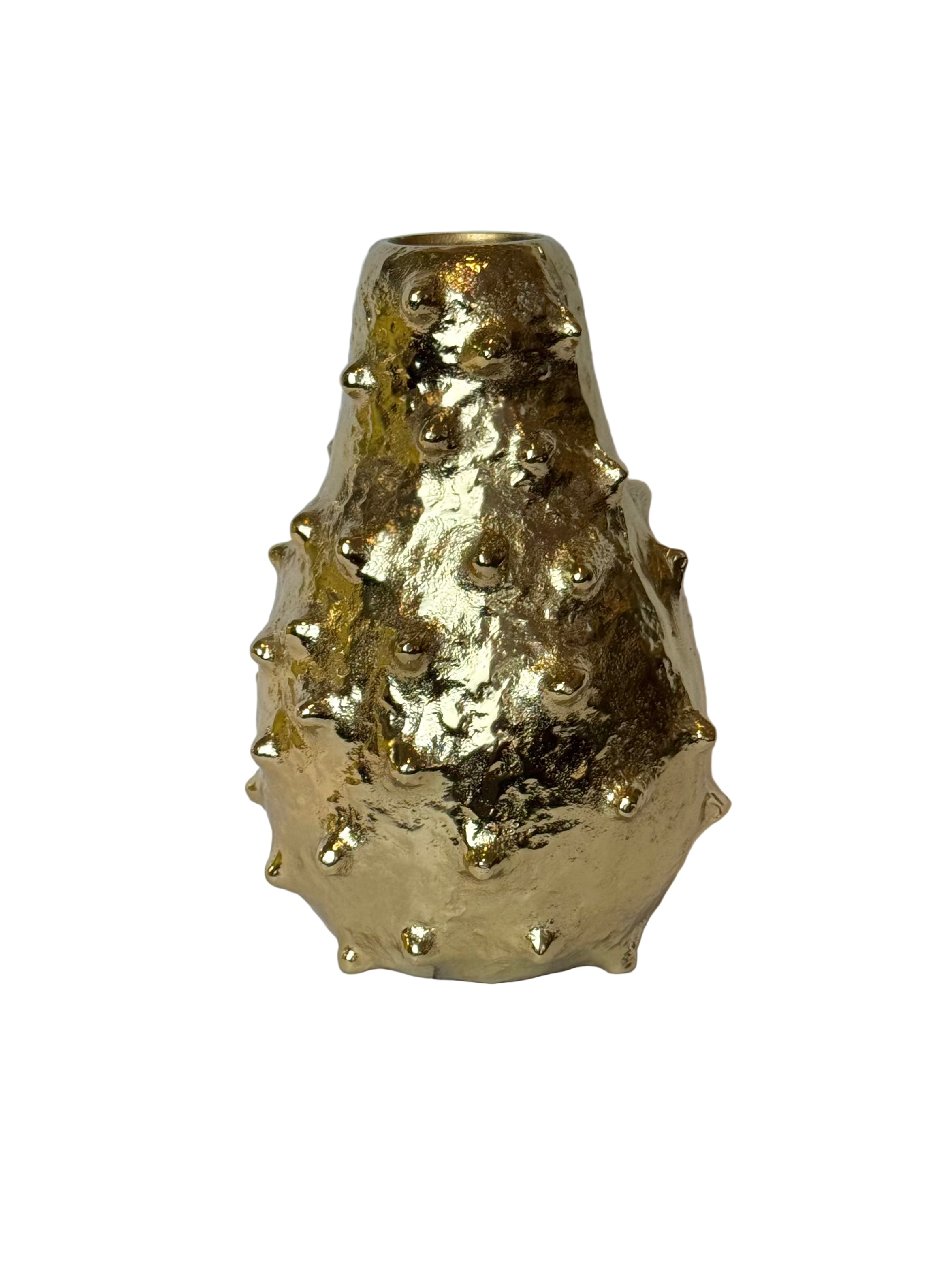 Gold Kiwano Vase, cast metal organic form with brass finish.