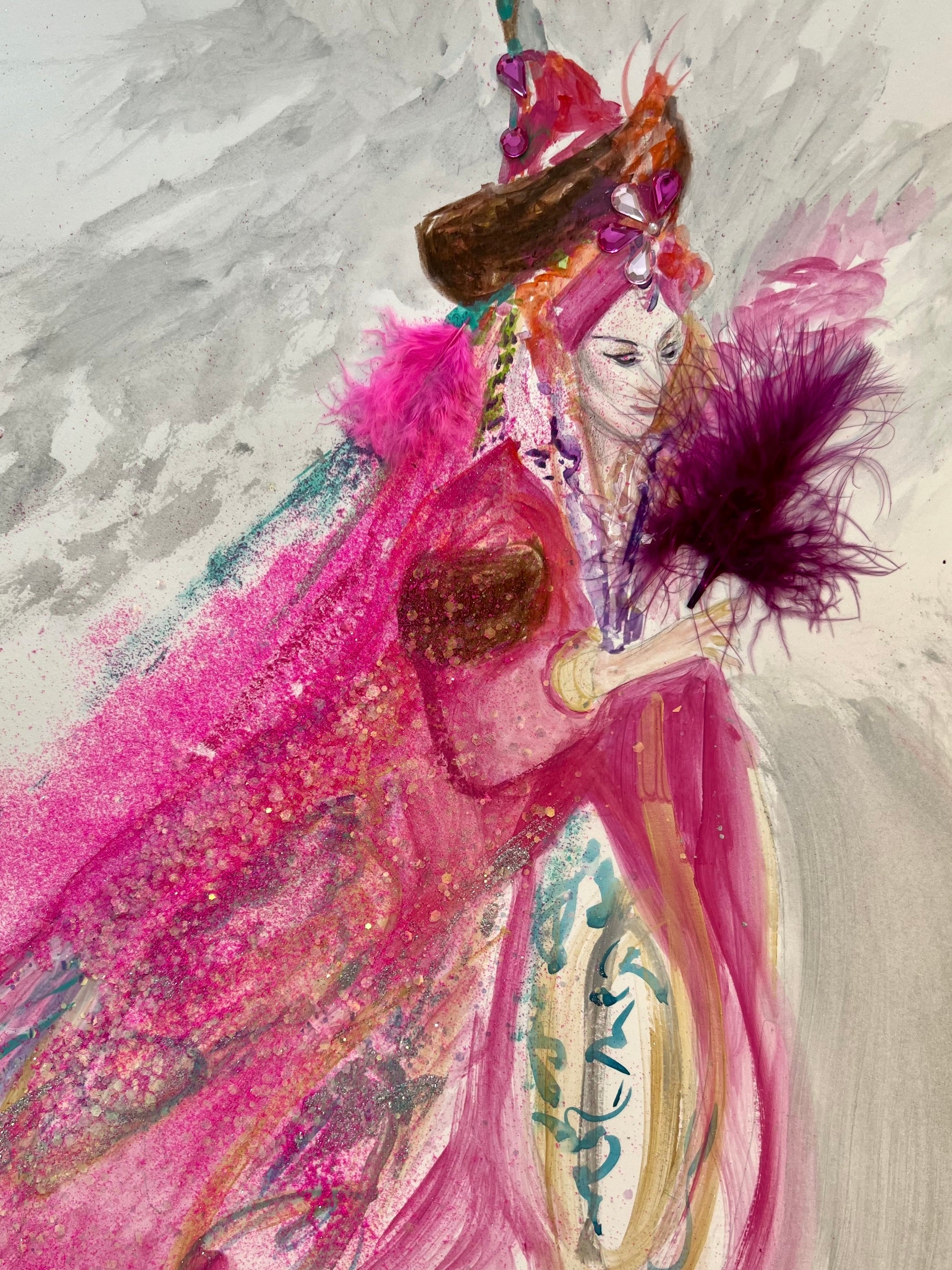 Dora Frost original framed watercolor that sparkles the essence of " Jacqueline De Ribes"