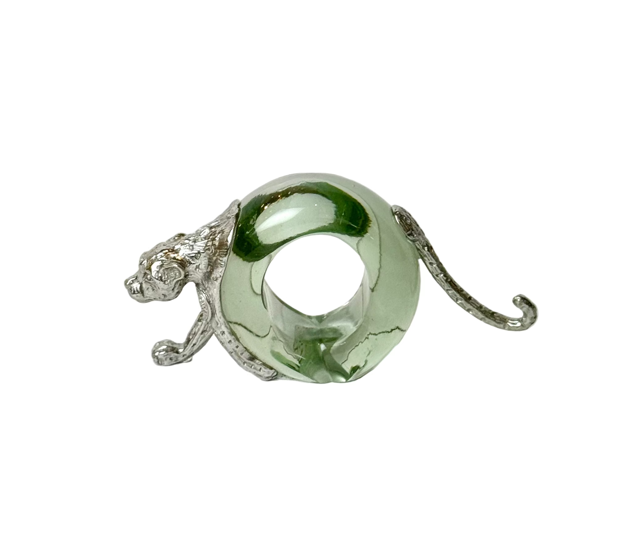 Cheetah Napkin Ring, recycled glass napkin ring silver cheetah head, made in South Africa. These fun mini animal sculptures can also be displayed individually or as a group.
