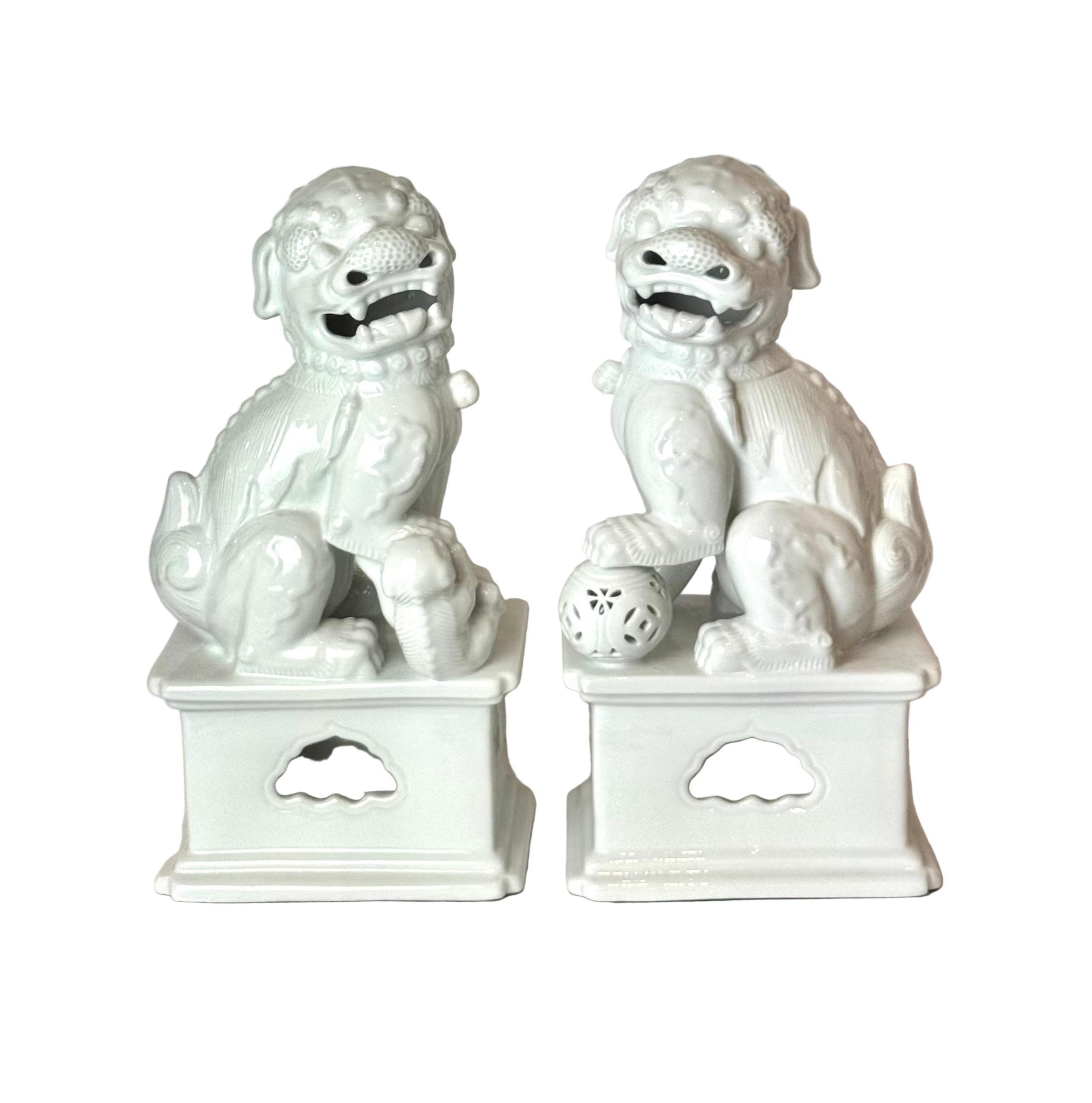 Foo Dog Pair, Chinese Foo Dog pair, white glazed porcelain.