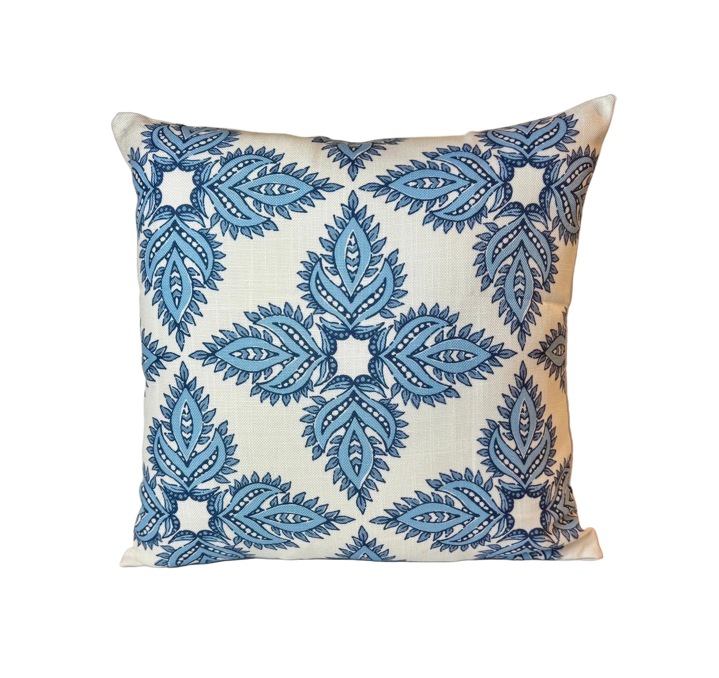 Maira Outdoor Pillow, Indigo on white pattern pillow.