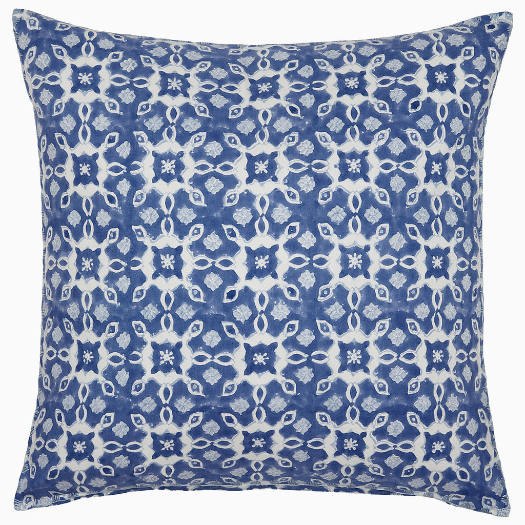 Mindra Decorative Pillow, Azure and white pattern, 100% cotton, feather/down fill.