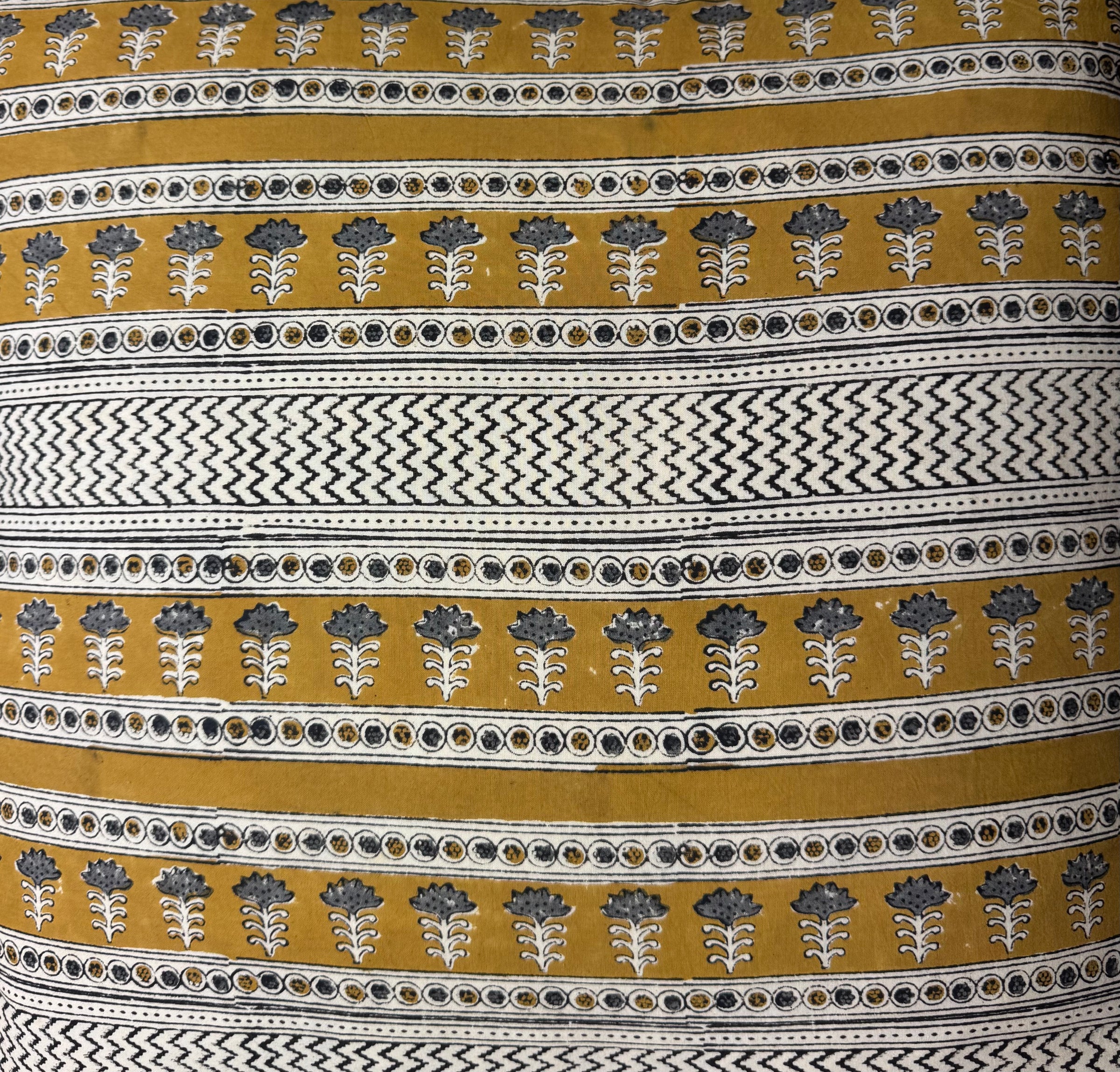 Stripe Pattern Pillow, Indian block print pillow gold, ivory, gray pattern striped cotton, feather down insert.